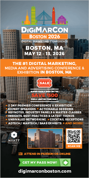 Sign up for email updates and get your the FREE DigiMarCon Boston brochure and stay in the know about all things DigiMarCon including price changes, discounts, and the latest speakers added to the schedule.